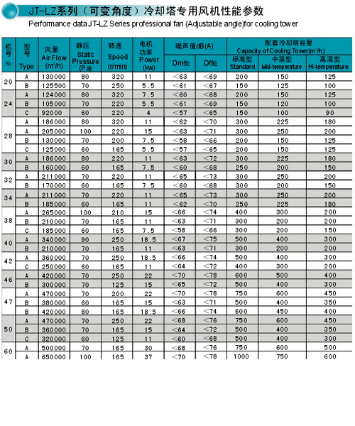| JT-LZ、LTF系列冷却塔专用风机是本公司与上海交通大学经过二十多年的联合研制、开发并大批量生产的产品,进行过四次更新换代,使产品更加精益求精,曾分别多次获得浙江省、上海市环保部门重大(优秀)科技成果奖和科技进步奖、国家质量奖等,其中宽叶、大弦长、空间扭曲型设计还荣获国家发明奖。该产品具有效率高、噪声低、耗电省、运行可靠等特点,现已广泛应用于各冷却塔制造商的方形横流式冷却塔、方形(圆形)逆流式冷却塔,其派生型还应用于蒸发式冷凝器、风冷、油冷等装置。 JT-LZ、LTF系列冷却塔专用风机可根据用户不同使用场合的要求分别采用铝合金、玻璃钢材质生产,直径小于1500mm的风机亦可采用ABS或PLOYCARBONATE材质。 |